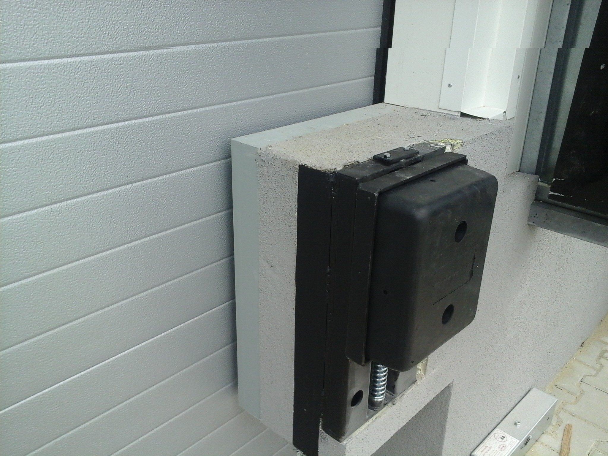The JUMBO-PRO loading dock bumper with a steel base is fixed with steel anchors through the base plate. This type of installation increases the loading dock bumper's fixing strength and durability.